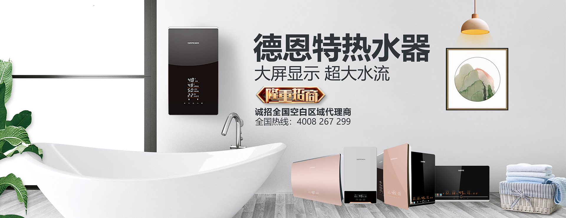 2005年,德恩特品牌全系列高品質(zhì)產(chǎn)品推向中國市場,品牌旗下快熱式電熱水器、速熱式電熱水器、快熱儲水組合式電熱水器、燃氣熱水器和凈水機等“水家電”系列產(chǎn)品。