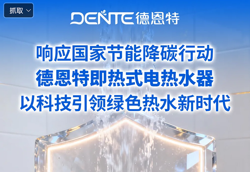 國務院印發《2024—2025年節能降碳行動方案》(國發〔2024〕12號),明確提出要加快重點用能設備能效提升,推動綠色消費與低碳生活方式的普及。作為家庭日常能源消耗的重要設備,電熱水器的能效水平直接影響全社會節能減排的成效。在政策引導與市場需求的雙重驅動下,傳統儲水式電熱水器因待機保溫能耗高、熱效率低等問題,正面臨全面升級的挑戰。 德恩特即熱式電熱水器憑借前瞻性的技術布局與系統化的產品設計,精準契合國家綠色發展戰略,成為推動行業低碳轉型的重要力量,助力“雙碳”目標在民生領域的落地實踐。