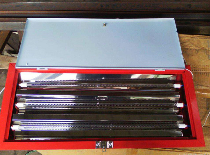 烤燈采用環(huán)保技術、改善了操作環(huán)境,加熱系統(tǒng)無需大電流啟動,散熱迅速,避免了燃油烤漆房存在的安全隱患。烤燈利用本身遠紅外輻射加熱,而避免空氣循環(huán)對漆面形成二次污染,使漆面更潔凈,從而提高烤漆質(zhì)量。