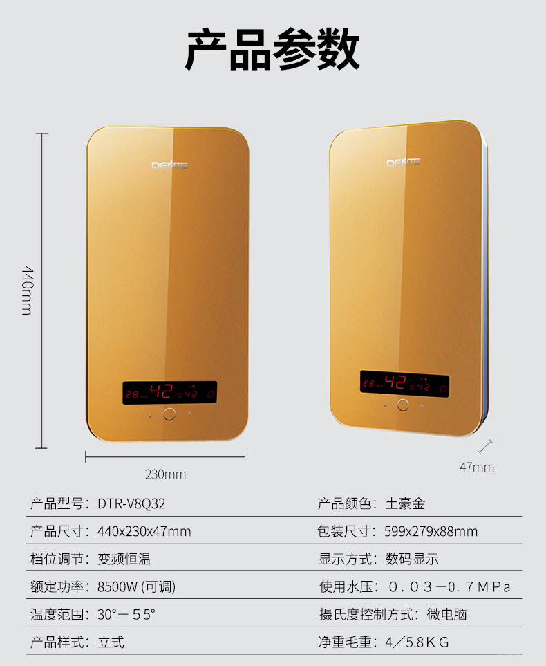 德恩特DTR-V8Q32 即熱式電熱水器小型家用恒溫洗澡機(jī)